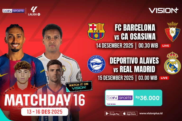 Untuk menyaksikan seluruh pertandingan tersebut, kamu bisa streaming di VISION+ dengan berlangganan paket beIN Sports seharga Rp36.000,- per bulan. Dengan langganan ini, kamu juga akan mendapatkan akses tayangan premium mulai dari original series, microdrama VISION+, hingga film seru lainnya.