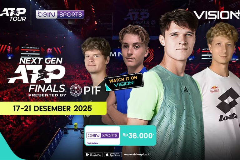 Dukung bintang muda favoritmu dan saksikan lahirnya juara masa depan tenis dunia hanya di VISION+. Streaming tayangan beIN Sports dengan berlangganan di VISION+ mulai dari Rp36.000/bulan, sekaligus akses ke berbagai ajang olahraga kelas dunia lainnya. Download aplikasi VISION+ sekarang di App Store dan Google Play Store, dan jangan lewatkan setiap game, set, dan match Next Gen ATP Finals 2025.