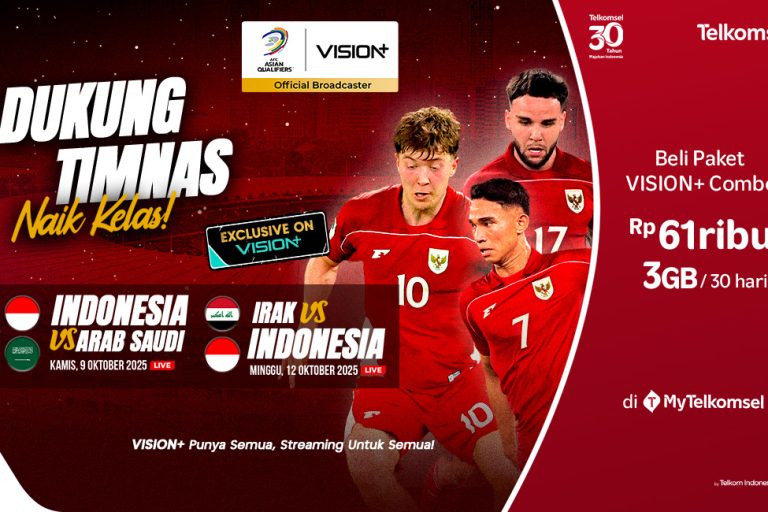 Biar dukunganmu ke Timnas makin totalitas, nonton streaming pertandingannya dengan Paket VISION+ Premium Combo hanya Rp61.000 (sudah termasuk PPN)! Dengan satu paket ini, kamu akan mendapatkan akses Premium VISION+ yang memungkinkan kamu nonton berbagai konten premium terbaik mulai dari pertandingan bola kelas dunia, film, microdrama hingga original series terbaik. Sekaligus, kamu juga dapat Kuota 3GB selama 30 hari untuk streaming tanpa takut kehabisan kuota saat nonton pertandingan seru Timnas.