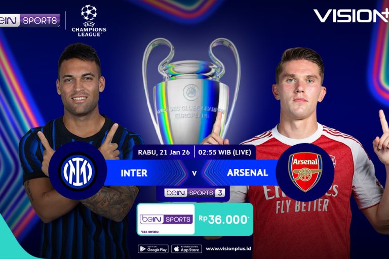 Saksikan keseruan Inter vs Arsenal hanya di VISION+. Nikmati live streaming UEFA Champions League dan berbagai kompetisi olahraga kelas dunia lainnya dengan berlangganan paket beIN Sports mulai dari Rp36.000,- per bulan. Kamu juga bisa menonton ajang olahraga lain seperti LaLiga, ATP Tour, hingga Formula 1.