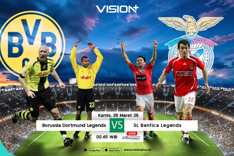 Saksikan keseruan pertandingan Borussia Dortmund Legends vs Benfica Legends secara langsung pada Kamis, 26 Maret 2026 pukul 00.45 WIB hanya di VISION+. Pertandingan ini akan menghadirkan kembali kenangan bersejarah, aksi para legenda, serta atmosfer sepak bola klasik yang penuh emosi bagi para penggemar.