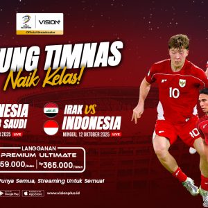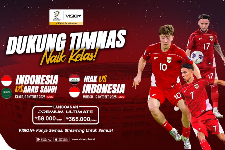 Kamu bisa nonton pertandingan Timnas Indonesia secara live streaming eksklusif di VISION+. Klik di sini untuk nonton Indonesia vs Arab Saudi dan Irak vs Indonesia.